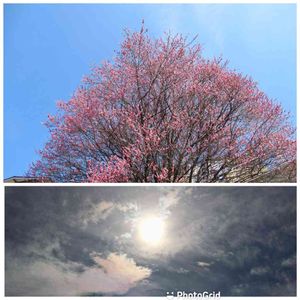 今日 11時48分 仕事帰りに綺麗な彩雲🌈見えました 桜の木の上 🏷半分そら 参加させて下さい 🏷雲仲間 🏷アート雲☁️