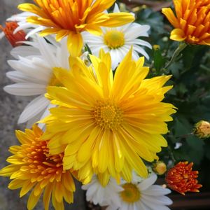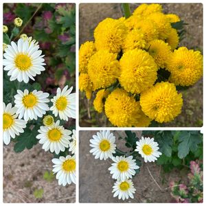 1、2枚目:寒い季節に咲くから寒菊の名が付いたシマカンギク。日本に自生するキク属の中でも特に可愛いと思います。 3枚目:昔からウチにあるイエギク。 4枚目:サクラソウの鉢に生えてきた雑種と思われるキク。春の植え替えのときに、可哀想ですが処分します。