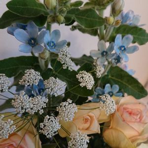 今日のお花「ブルースター」です🌿💠 薔薇とレースフラワーと 一緒に生けてみました✌️😉 とっても可愛くて大好きです🤗💕 ( 昨年撮影 )