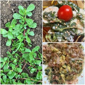 スベリヒユ 花言葉 いつも元気 おそらくこの夏1番の暑さが 今日から続きそうなので🥵🥵🥵 体力増強に『野草界のスーパーフード』 スベリヒユでスタミナを付けようと 思います❣️😁♫ 何もしなくても勝手に生える雑草の 力強さを頂きます❣️🌿😋♫ ↗️去年辛子マヨネーズ味が 美味しかったので、キュウリと 混ぜてみました🥒✨ ↘️卵と混ぜて卵とじ風にして カツオ節をかけ、醤油で頂きました😋 少し滑りがあるので滋養強壮には もってこいの食材なのかも知れません❣️😄 夏バテ知らず❗️で夏を乗り越えます❣️💪 水撒きで虹を作りました❣️🌈✨🚿 ちょっとは涼しく感じるかなぁ…🤭