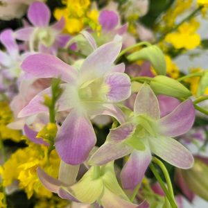 今朝の職場でアレンジメント💐 デンファレの花もちの良さに驚きです👀