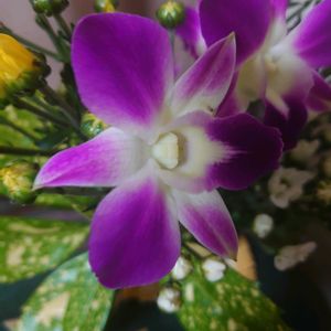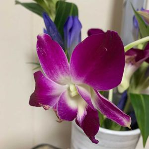 多肉植物やエアプランツの フラワーアレンジメント エリンジウム,スターチス,デンファレ サンデリアーナが手に入らなかったという事で オマケに付いてきたシマトネリコの 小さな苗も綺麗です。 お家にサンデリアーナがあったので 追加してみました🥰✌️