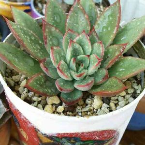 花月夜 葉先がピンクでむっちゃ可愛いくなってます~😆 奥にいるのは、多肉を食べようといつも狙ってる悪いやつ。