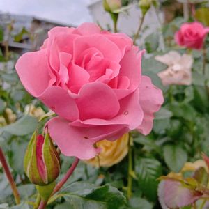 ①リサリサ🩷 可愛いく咲いてくれました ②スーパートローパー🧡❤️ 発光色で目立ってます ③黄砂で車も汚れてるけど薔薇の葉っぱも汚れてます🌱😮💨