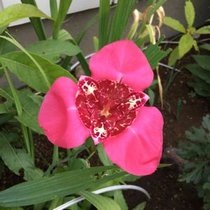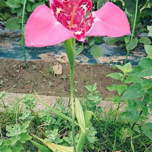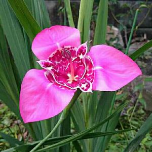 2年前に植えた球根。今年咲いてくれました。 名前忘れたのですが、南国風🏝 1日限りのお花です。 右は白く見えますが、優しいピンクです💕 名前を教えていただきました。 《チグリジア》です💕 ありがとうごさいます🙇♀️