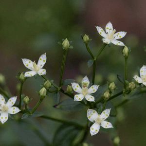 アケボノソウ 北海道から九州の小川のほとりなど湿ったところに生息する2年草。5枚の花びらが多数を占めるが、4枚も見られる。深く5裂、4裂している合弁花。花びらに蜜を出す蜜腺溝(2個)に蟻たちが頻繁に通っている。蜜腺溝の無いものをフナシアケボノソウという。 20241011