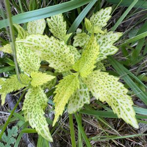 もう一枚失礼します🙏 キンモンヒヨドリ 先日、フォロワーさんの投稿で見た👀 ウイルスに感染して葉っぱが黄色の模様に なっているヒヨドリバナ 綺麗な葉っぱです🌿 お花はまだ早かった💦 見て頂きありがとうございました🙇♀️