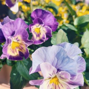 こんにちは~😊 シエルブリエ💜💙と極小ビオラミミラパン💛 今日も元気に仲良く…🥰