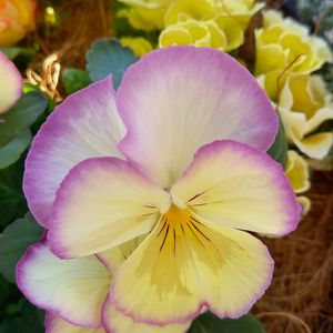 こんばんは✨ 寒い1日でしたね~😣 温かそうな色合い💛のビオラ…花日和さんのミミラパン うっすらパープルが入り込んでます💛💜 2cm足らずの可愛いsize💛 🏷️日曜ビタミンカラー♪に参加させて下さいね🍀