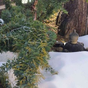 ミモザ❣️ アカシアを検索してたら、みんなのアカシアに蕾が!の投稿を見て、私も自宅のを見てみた🔍😳😍 この春買って植えた銀葉アカシア、ミモザ❣️ 鉢の時に少しポンポン🌼付けただけ。 庭改造で地植えにしたらたくさん蕾がついていた😆🎉🌼🌼🌼💕 本当の時期じゃないのに寒いからなのかな... 狂い咲きって咲かせちゃっていいのかな〜🤔 貧乏性なので、このまま咲かせてあげよう😆💕🌼 庭が満開で黄色になるのを夢見て植えたから、早々に楽しみがやってきそうでウキウキです💓