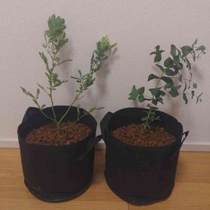 銀葉アカシア(ミモザ)とユーカリグニーを購入して植え替えました🪴 不織布の鉢は初めて使ったけど、通気性が良さそうで場所も取らずとっても良いですね😌✨ 順調に成長してくれることを願います☺🌷