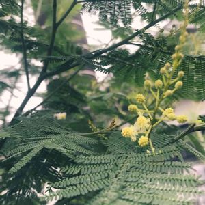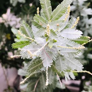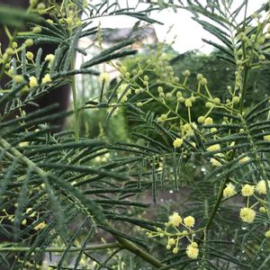 ☀︎Gօօժ ᗰօɾղíղց☀︎ 銀葉アカシア(ミモザ)。シルバーリーフと呼ばれる銀色がかったグリーンの葉が特徴的です。3月頃で総状花序に黄色の花をつけるのです🌼