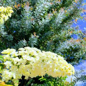 ☀︎Gօօժ ᗰօɾղíղց☀︎ 銀葉アカシア(ミモザ)。歩道まで伸びてきたので、来週、剪定することになりました。3月頃で総状花序に黄色の花をつけるけど、剪定したら、どうなるんでしょう?!