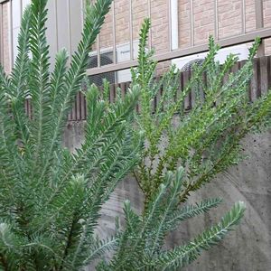 左…『銀葉アカシア ブルーブッシュ』 右…『三角葉アカシア』 剪定時期を逃し延びたい放題(笑) 台風などの強風であおられよく折れます(笑) 花は見たことありません。 きっと剪定時期を間違えているのだと思われます。