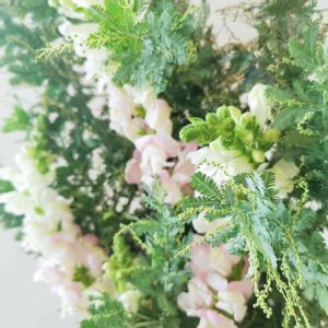 銀葉アカシアと金魚草飾りました フワッとミモザの香りが😲 蕾だけど香るんですね!ん?金魚草の香りかな? どっちか分からないけど🤣いい香りです🤭