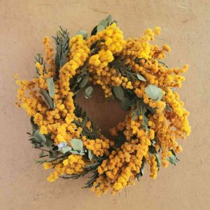 余ったミモザアカシアをふんだんに使った小さなリース。 外出自粛で家の中に籠りがちに。 家の植物でちょっとした花飾りやアレンジメントを作ることで、部屋の中も明るくなります。