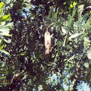 源空院で見つけた枝垂れ桜をバックに見たことのない変わった花いや葉っぱ 「君の名は」