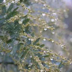 銀葉アカシアの葉に沢山の雫 キラキラ✨輝いてました