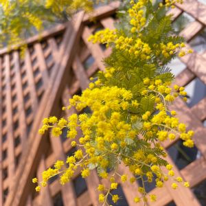 ミモザの日! 3年目?の鉢植えミモザです。 ご近所さんに配ったりしたいけど、まだ半開花って感じなんですよね!