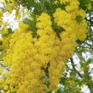 3/16 (木) ☀️ 🌳💛銀葉アカシア💛🌳 ミモザ(アカシア) 学名❀✿Acacia baileyana 英名❀✿mimosa 別名・流通名❀✿ミモザ ※マメ科 ※アカシア属 原産地🔷オーストラリア南部 ♣️「ミモザ」はギンヨウアカシアやフサアカシアなど、黄色い房状の花を咲かせるマメ科アカシア属の総称。シルバーリーフと呼ばれる銀色がかったグリーンの葉が特徴的な半落葉~常緑高木。本来の「ミモザ(mimosa)」はオジギソウの学名だが、黄色の房状の花が咲くアカシアの仲間の呼び名として使われている。♣️ 3/15付📸📱💛公園広場の樹木🏞🌳