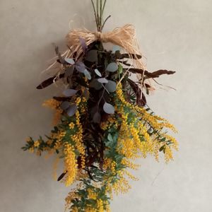 ミモザのリースを作りました😊💓💓 職場に植えた、ミモザも10年くらい、今年も沢山咲きました、沢山カットしてみんなで分け分け、花瓶に入れたり、リースにしたりスワッグにしたりみんなで楽しんでいます😊🎶🎶