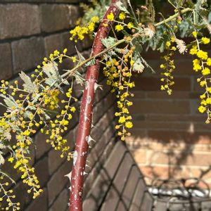 銀葉アカシア💛 やっと咲き始まった〜💕😊 昨年カイガラムシ被害で、3分の2近くカット✂️💦今年の大寒波でものすごく痛み💦😭 ボロボロのアカシア💛 でも何とか開花してきた〜💖