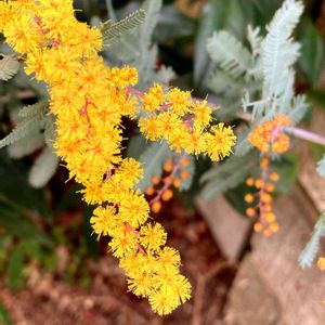 大きな木を植えるスペースがないので、毎年切り花を買ったりもらったりしていたミモザ💛 鉢で育ててみようと、昨年小さな株をお迎えしました🪴 少しだけど咲いてくれてうれしい🤗 春ですねയꕤ🐝 緊急避難中の鉢がごちゃごちゃしているのはお気になさらず😅