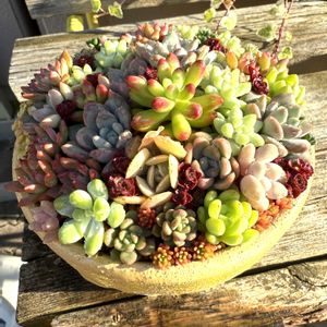 2枚目の寄せ植えを解体しました。 可愛く色づいて、解体するのは勇気が入りました🥹 でも、ほとんど伸び伸びになってしまっていたので、思い切りました。 1枚目。 空いた鉢に新しく葉挿し苗やカット苗で寄せ植えしました。 3枚目は、解体した苗や去年増やそうとしたのに、夏に徒長した苗を… 何というんだろう🧐 何でも入れちゃえ的な寄せ植えです😅 まだ外側が空いてますが、まだ解体する寄せ植えがあるので、すぐに埋まるでしょう😁