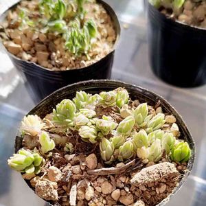 買ってから気付いた小さな子株?花芽? ずっと探してた相府連に、偶然行ったコメリで出会ってしまい、金額も見ずに(急いでいたのもあるけど)買ってしまいました。 紅葉がきれいなのも、交配元によく使われているのも知ってるからお迎えできてよかった…😁 仕事復帰したからなかなか多肉事出来ないかと思えば、おちびたちを保育園にお願いしているおかげで逆にゆっくり多肉に向き合えそうです。 天気が落ち着いたら胴切りしなきゃいけない子がたくさんいるので早くやりたいなー。