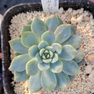 セダムオリジナル交配種、ケイティ雪心です。 エケベリアの交配種ってそこそこ自分でやってる方を見かけます。 まだ実生もしたこと無いくせにやってみようと目論んでいる私…(リトープスは種まきしたけど、結局あんまり大きくならず今年の夏に溶かしてしまいました😣) 偶然お目にかかれたこちらの品種。 増やしていきたいです!