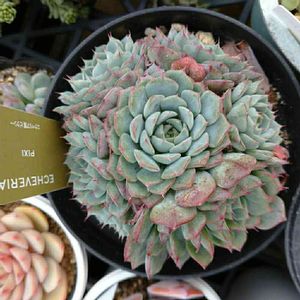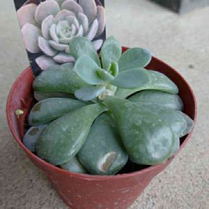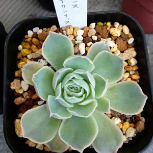 現物に近づけるためにちょっと加工しました。 火灯 JJリラシナ×ラウイだったと思います。 その、JJっていうのがとうやら生産者さんの事らしいんですけども、その種類を見てみたいです…。 青く白い、超粉エケベリア。 夏はもうほんのり茶色っぽくなるみたいですが基本は青いようです。 夏の姿でさえ楽しみな美人苗です。 (めっちゃ指が写ってるのは、本当にすみません…)