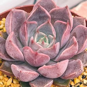双子の「グラムピンク」 まだ葉数が少ない、若いロゼットですが、可愛い色になっています✨ ツヤツヤなので、お水をあげた後は、キラキラととってもキレイになりますよ🤗 元気に大きくな〜れ😊