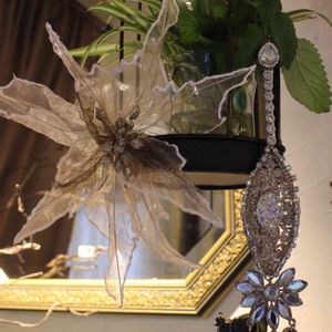 キャンドルを入れてた吊りランタンに 根付けしている レモンバームとオリヅルランを入れ 造花のポインセチアとオーナメントで xmas仕様にしてみました。