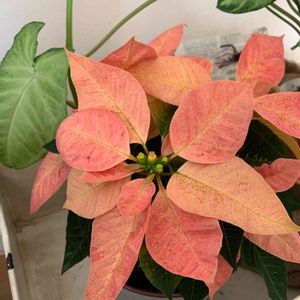 おはようございます❣️ 実家から、もらって帰ってきた、ポインセチアです。母は、花より団子タイプで、全くお花に興味がなく😅 薄いピンク?オレンジ?色に、ラメを散らしています。 ポインセチアも色々な色が出てますね〜❣️ 今日も素敵な日でありますように💗