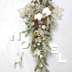 前回の写真では 薄暗がりで全体像が分かりにくかったクリスマススワッグ🎄。 正面からだとこんな感じになっています😊。 全長約80センチ。グリーンの部分はアーティフィシャルフラワー製。