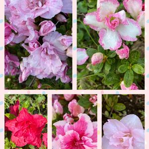 💚蝦夷錦💚 💚ツツジ💚 💚アザレア💚 花盛りです🤭 蝦夷錦は あっち向きこっち向きですが 1本の木から このように いろんな花が 楽しめます💓👩🏫