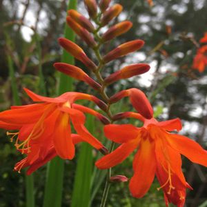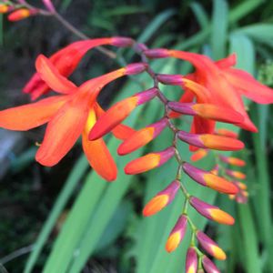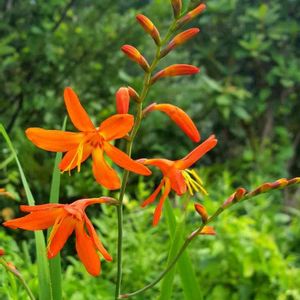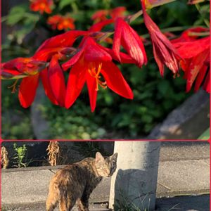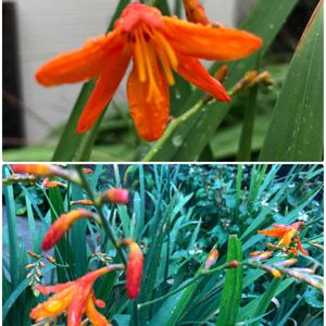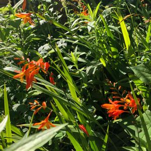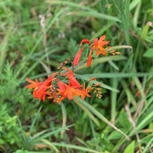 ヘメロカリスの花が終わり、その横に見慣れないお花が咲いていました。調べたらヒメオウギスイセン、又はモントブレチアというらしい。オレンジ色の小さな花が可愛いらしいです🧡 ヒメヒオウギズイセンという名前と教えて頂きました💕♪