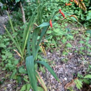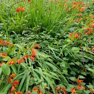 6/8 (月)🌤 ❤💚💛クロコスミア💛💚❤ ヒメヒオウギスイセン 和名❀✿ヒメヒオウギズイセン(姫檜扇水仙) 別名❀✿モントブレチア トリトニア ※アヤメ科 ※クロコスミア属 庭の隅❤開花しました💛📸📱🌿