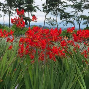 河口湖の大石公園にて モントブリチアが満開でした 赤の花が目にも鮮やかです