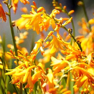 ヒメヒオウギズイセン(姫檜扇水仙) 別名 モントブレチア クロコスミア 原産地 南アフリカ 明治期に渡来してその後野性化し全国的な帰化植物となったようだ、ヒオウギズイセン
