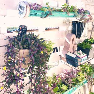 そしてこちらは、フェンス足した部分。 手すりの⬆️上を追加したよ。 すのこそのまま利用なんで、隙間が広めだけど良しとした😜 ハンドメイドプランター①下のは、収まった定位置。上のプランター②のやつは、多肉ちゃんの種類や数をもう少し増やす予定で埋まって来たら、お庭の方へ移動予定☺️ なので、仮置き。 こないだお得にgetした念願のユーカリさんが、ベランダで可愛さを一層演出してくれてる( 。ˆωˆ。 )♪♡