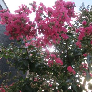 庭の百日紅…綺麗に咲いたけどお掃除が大変🐝🐝🐝もいっぱいでした。家族達は夏の桜と申しております…💞外で見る百日紅がサイコーです。