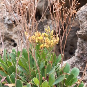 2024.8月 沖縄 キバナイソマツ(イソマツ科 イソマツ属) 絶滅危惧Ⅱ類 (VU) 岩場の上に沢山咲いていました。 薬草なんですね。