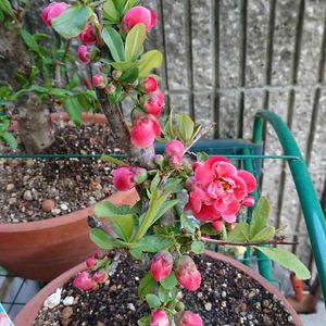 ボケの花芽第2弾🌸 前の花でおしまいと思っていたから、 嬉しいわぁ💕💕 お得ちゃんなミニ盆栽だった😃👍