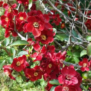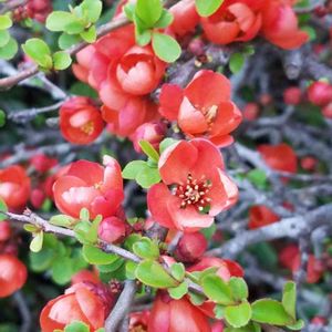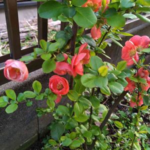ボケ(木瓜)シリーズ😊 長寿梅(四季咲き)満開です😊 実際にはもう少しオレンジ色してます