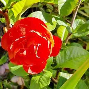 帰り道で出会った木瓜の花 八重咲きで花径3センチはありそうな豪華な木瓜。バラ目バラ科だけあって🌹を彷彿させます😉