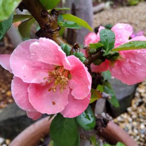 木瓜 ボケ*羽衣 結構気に入っているんだけど… 殆ど成長期しない😢 今年のお花は4つ 枯らさないようにしなくちゃ💪♡