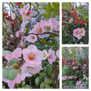 かわいいボケの花が咲きました❤️💚✌️😁 ピンクと赤でとても素敵です🤗