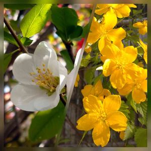ピンクと白の両方を持つ木瓜の花 こういうのをキメラと言うそうですが、木瓜では良く見られますね😃 これは混ざり具合がチャーミングだったので思わずパチリ🤳 🏷️金曜日の蕾たち に参加します😉
