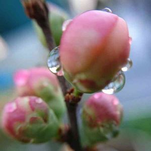 雨上がり Part3 ボケの花びらに溜まった雨が…💧